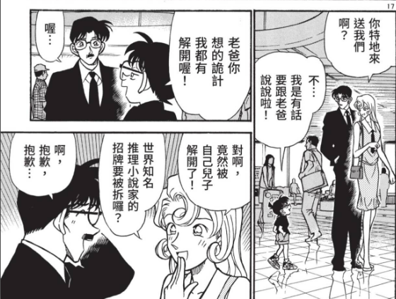 柯南(新一)喜歡挑釁他爸又或是被拿來跟爸爸比較就不甘心,優作則是很喜歡考驗測試兒子或是想看兒子程度到底在哪