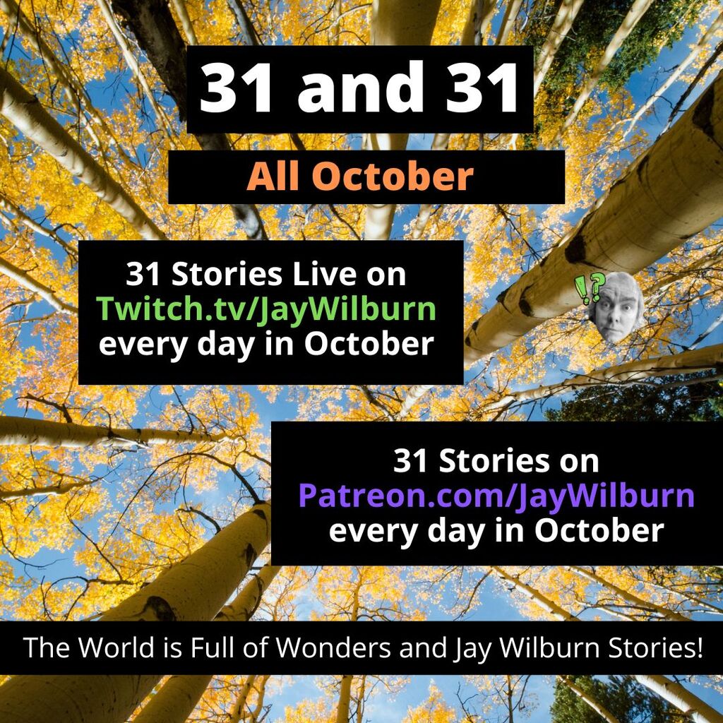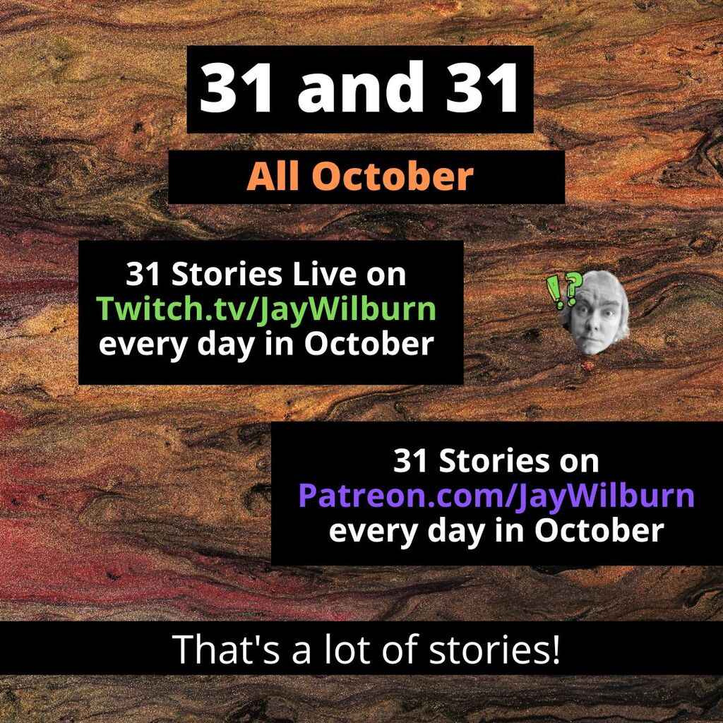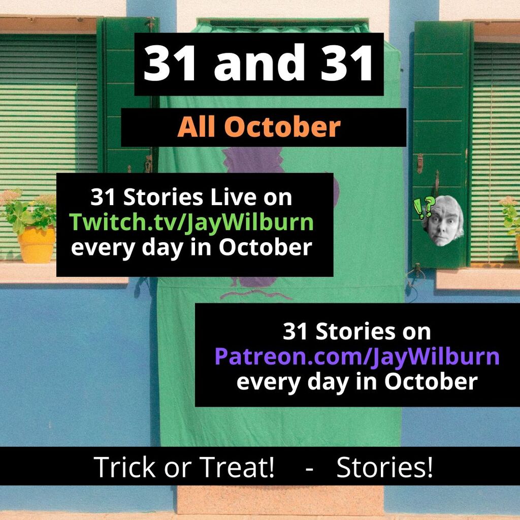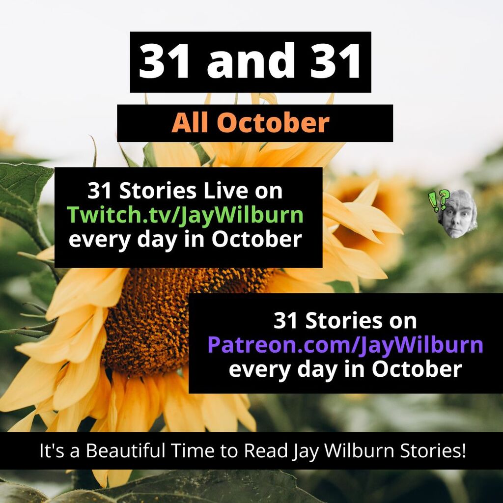 Day one of 31 and 31. Join me on patreon for 31 stories for a dollar this month or free on Twitch for a brand new story written from scratch live at 3:15 PM Eastern U.S. time today. See me write while dizzy and sick. It'll be fun!