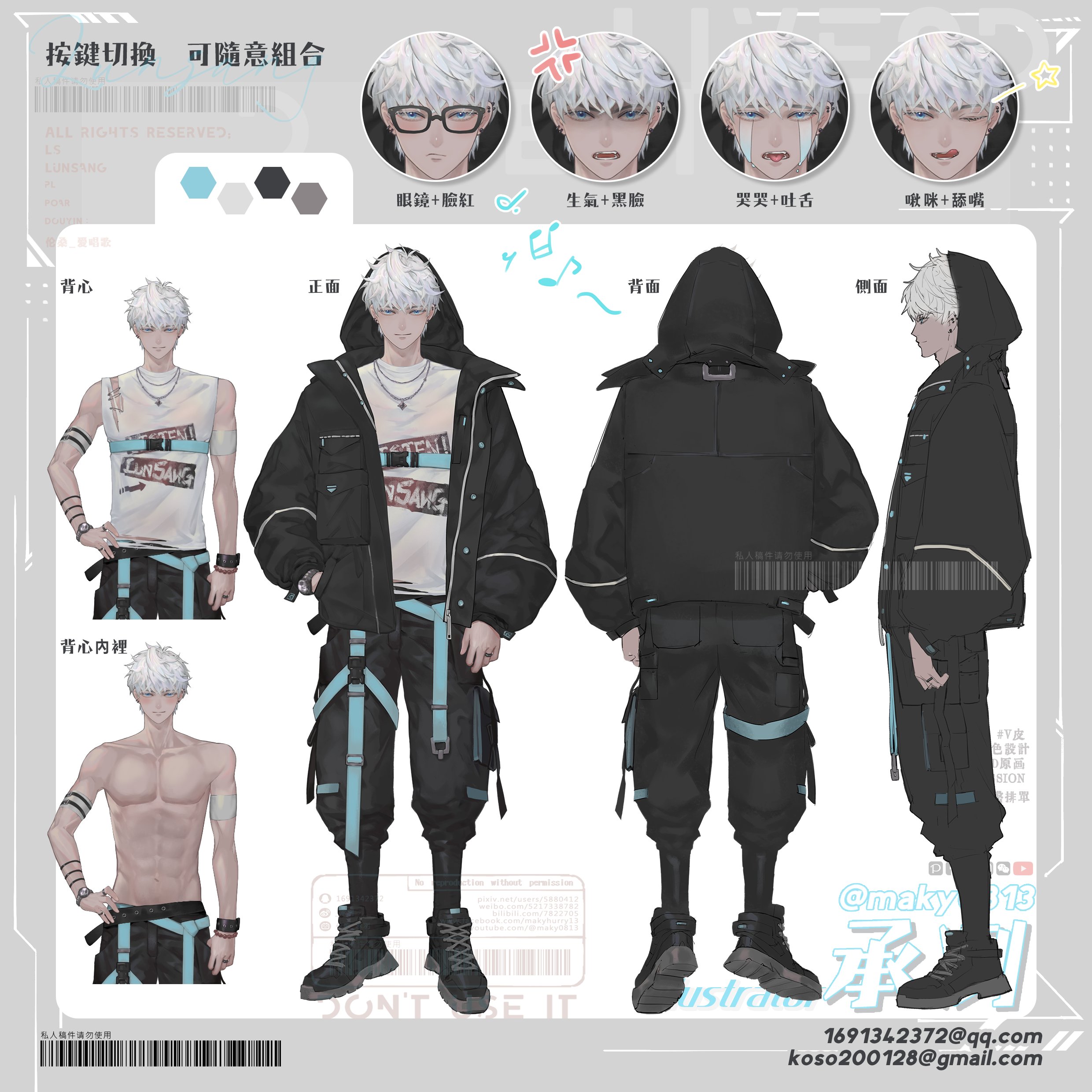 此次非商委只會有正面立繪,V皮詳設請信箱聯繫。風格可參考