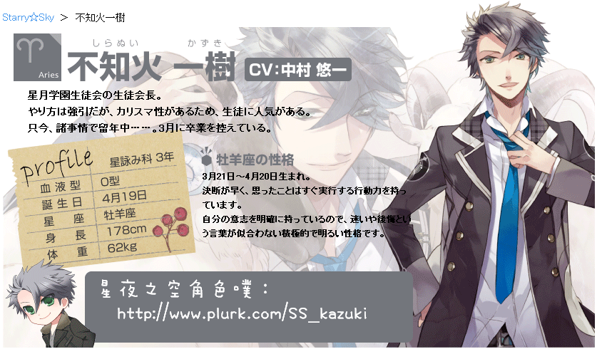 我是星月學園的學生會會長不知火一樹,