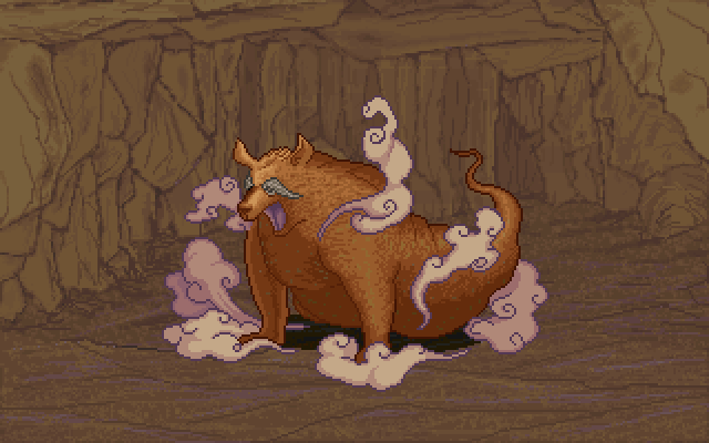 當年古月聖厚著臉說著要加入隊伍的時候我還以為他有多厲害,沒想到被石獅精吼一下就不支倒地。大家還得七手八腳地把他抬回客棧養傷。