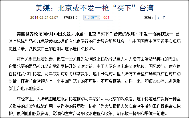 中國官媒再不諱言:以對待香港手法「買下」台灣