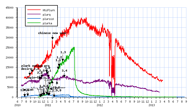 [轉] kcwu: kcwu.csie.org/~kcwu/tmp/... plurka 比 plurq 多了. pluroid 1.9.9 推出後使用率明顯下降...