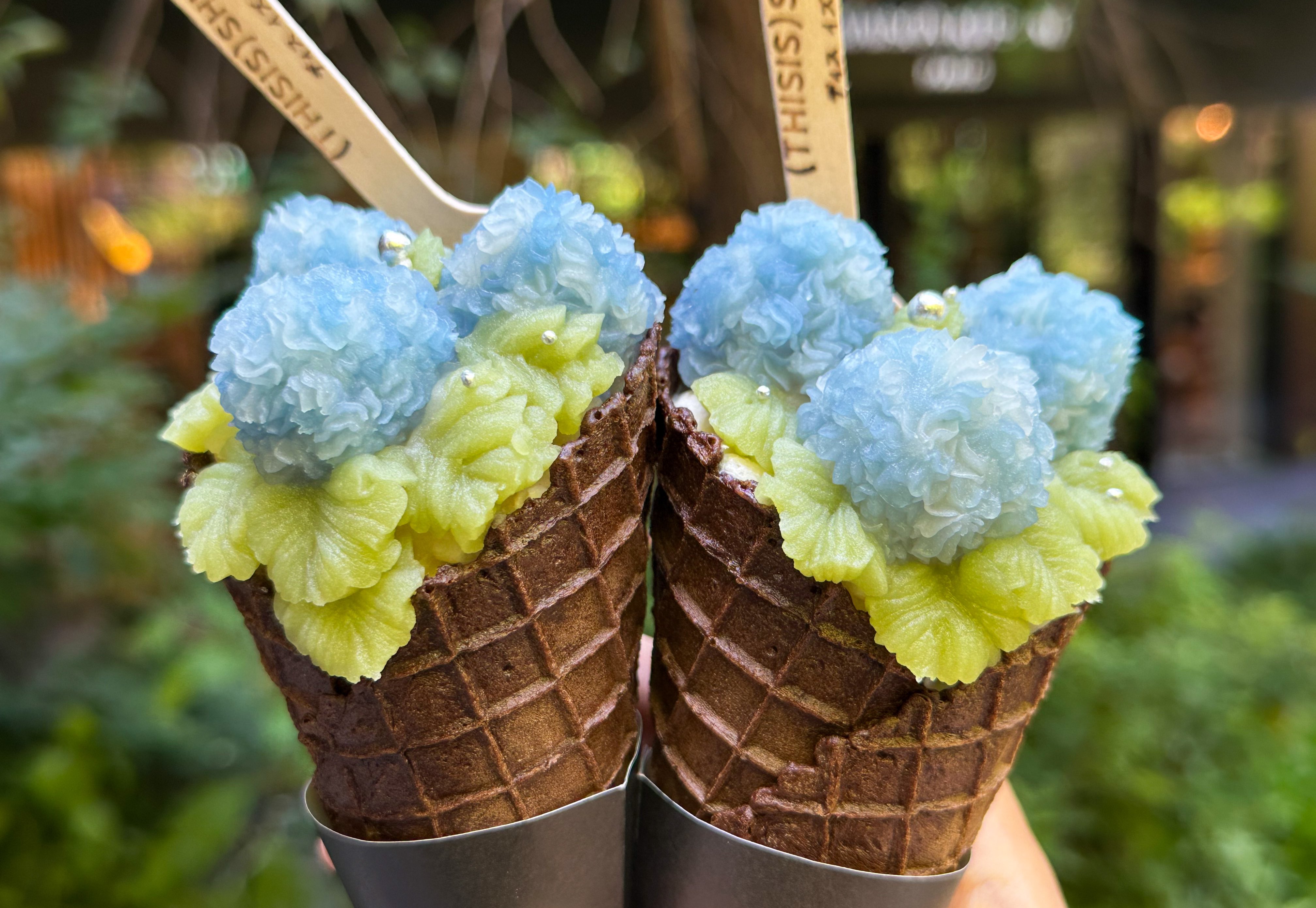 用豆沙餡做成紫陽花造型的甜筒耶!