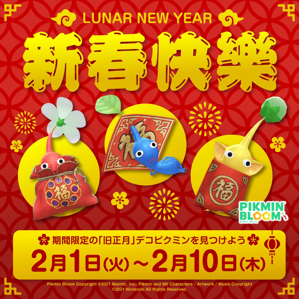 2月1-10日推出新春皮克敏,收集的話要快唷。重點: