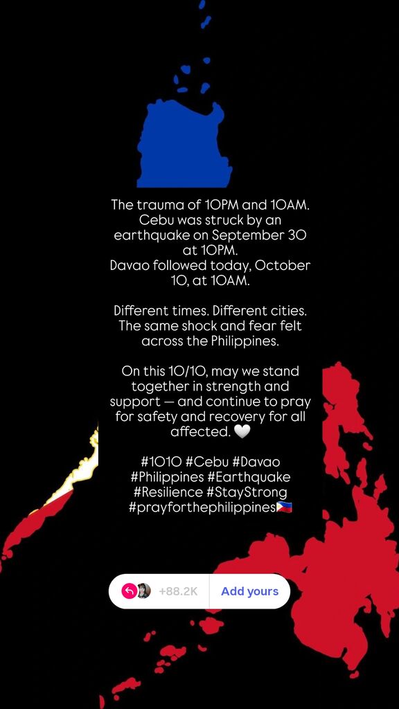 Prayers for everyone directly affected by the multiple earthquakes that have occurred in the country🇵🇭 recently🙏🏻
