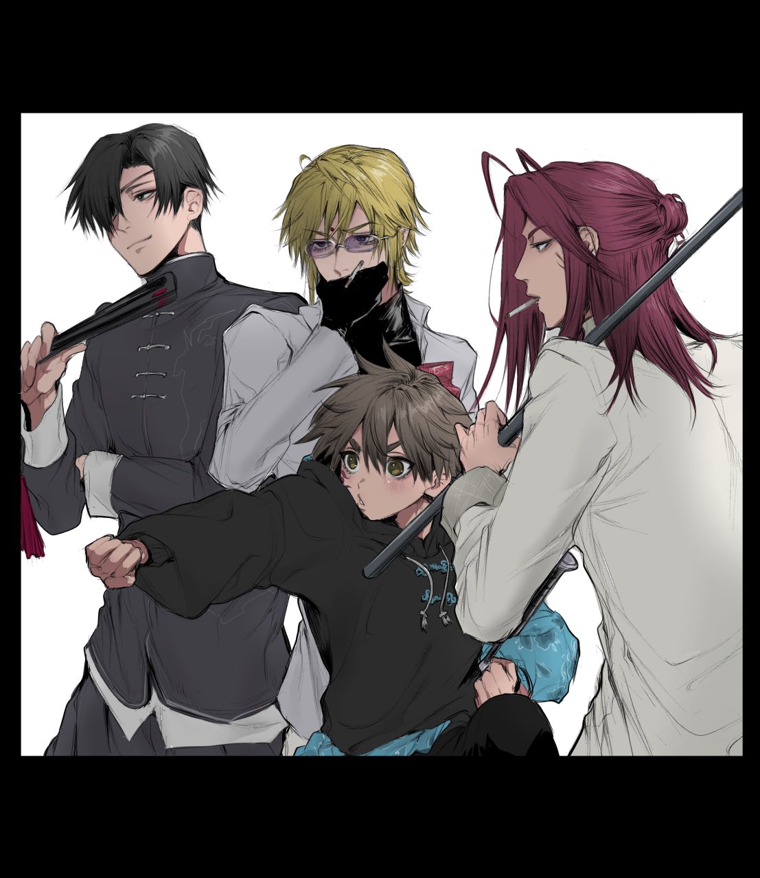 [Saiyuki] Minekuras newest illustration launch has the boys as a modern day Chinese mafia AU and I am living for all the fanart that's formed out of itま (@mamama2836) on X