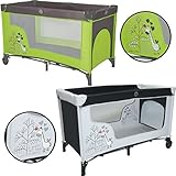 Reisebett GIRAFFE Kinderreisebett Babyreisebett (Grün / Dunkelgra...