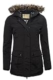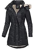 Warme Damen Winter Jacke Mantel Winterjacke gefütterter Parka lang B190 [B190-Schwarz-Gr.L] -