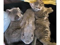 同花色就是一家人!貓咪包夾兔子 像三明治緊緊依偎 »