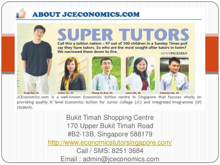 is a tuition center providing private or group Economics tuition for JC 1 and JC 2 students by the super tutors in Singapore. Call/SMS - 82513684 to take a tuition (Private or Group) today for your child.