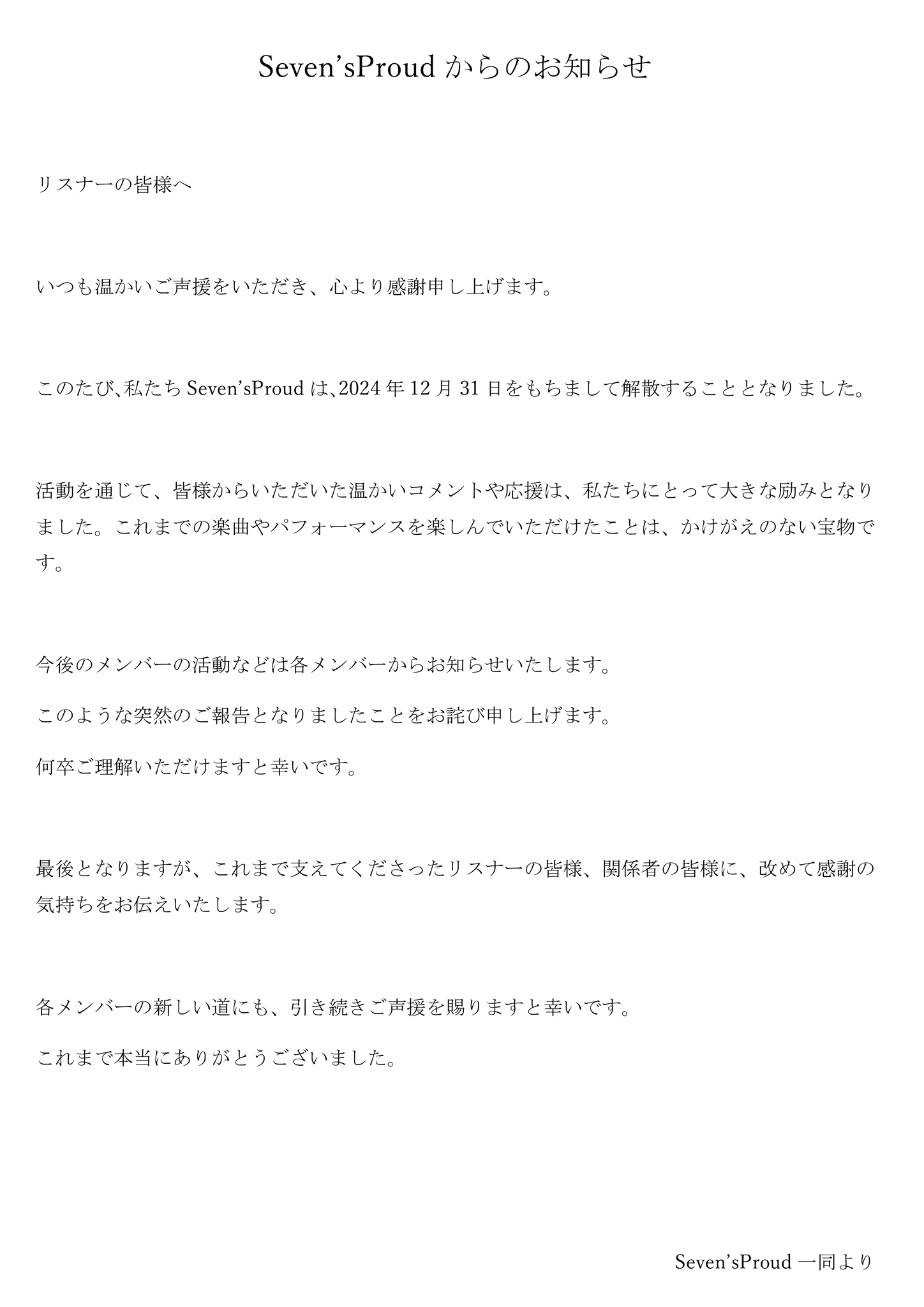 啊⋯ セブプラ解散⋯