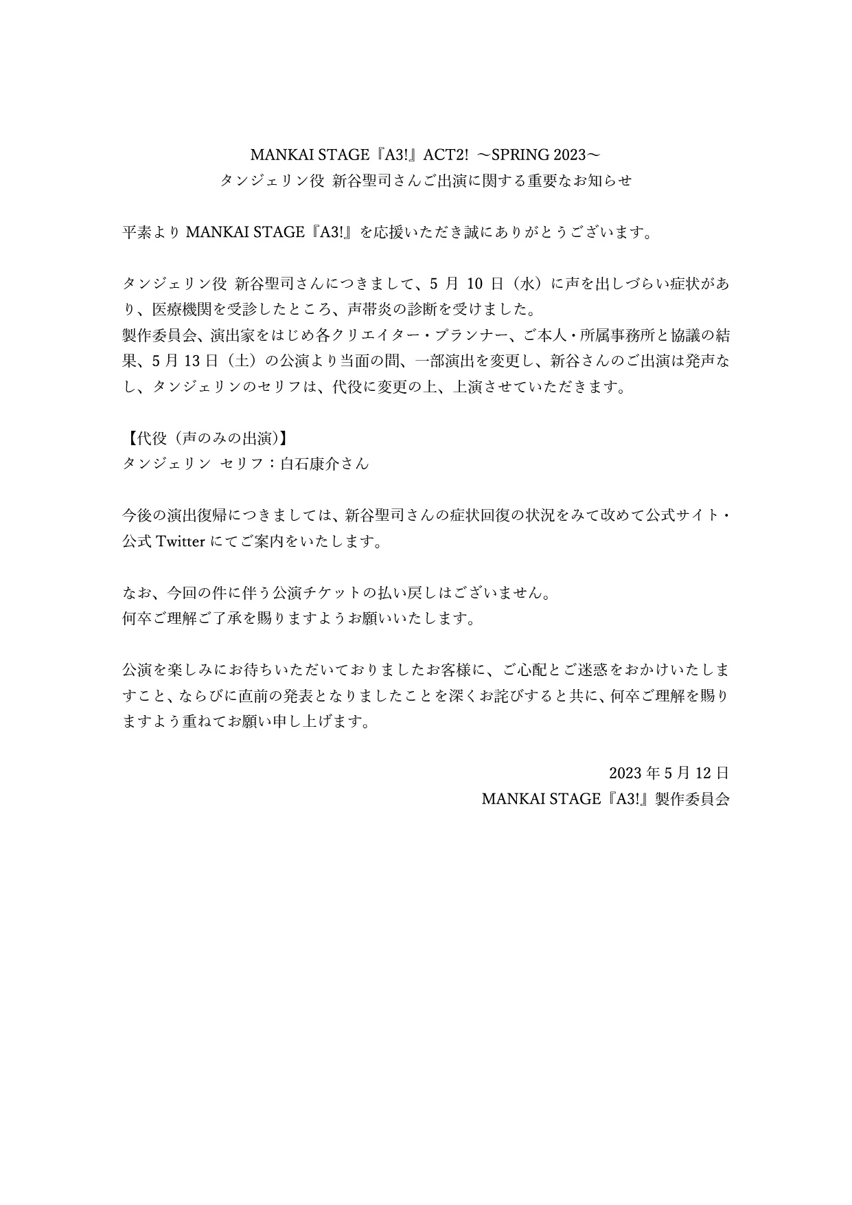 嗚嗚這次エーステ又取消初日了QQ