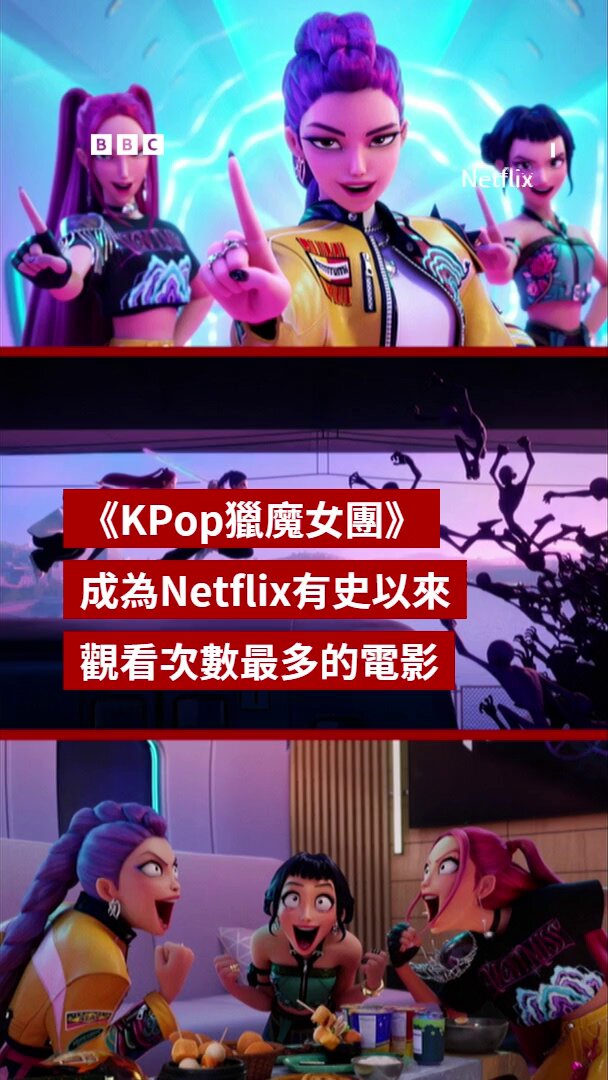 「《KPop猎魔女团》已成为Netflix历来观看次数最多的电影。自今年六月上映以来,这部动画音乐电影已被观看超过2.36亿次,超越动作喜剧片《红色通缉令》,夺下冠军宝座。电影中的歌曲也成为网路上最受欢迎的串流音乐之一。」