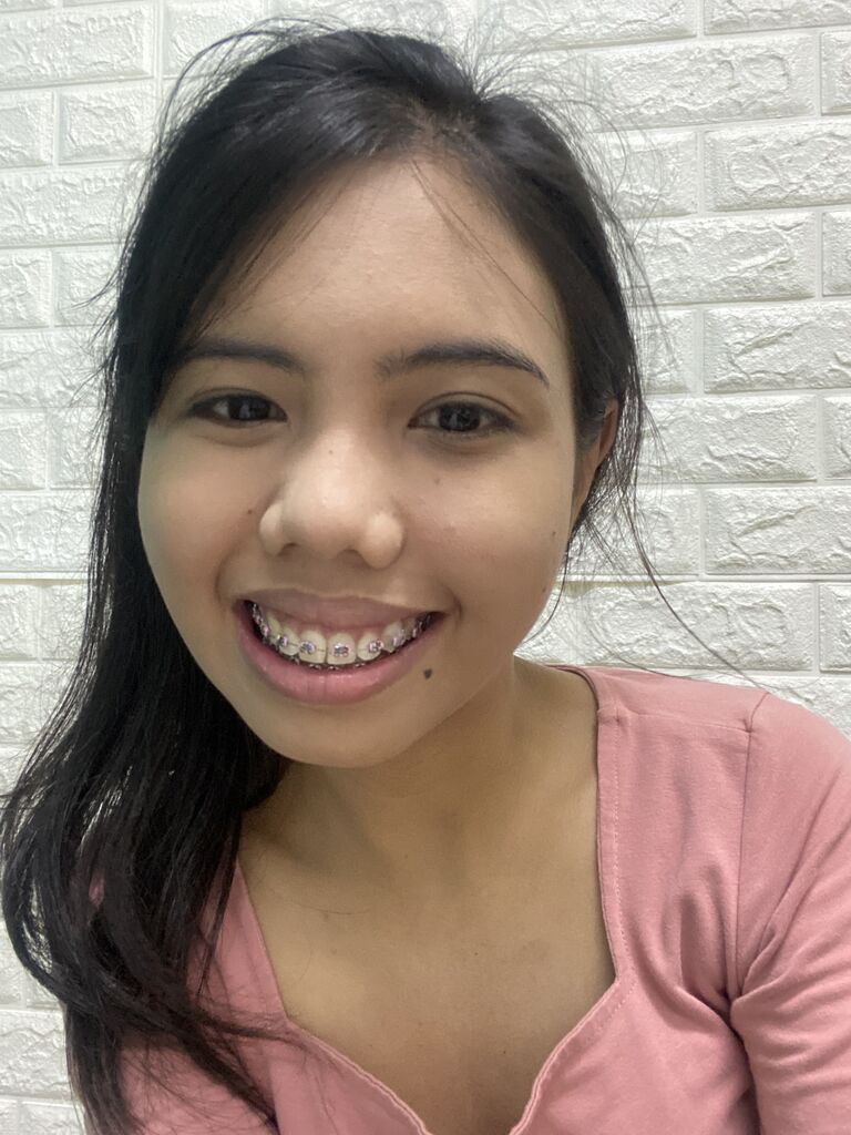 Practicing how to smile. Was so excited to remove this 9 years ago. But did not wear my retainers after 6 months, so hello again.