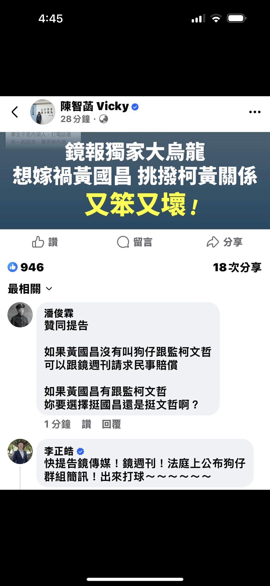 許甫:柯文哲本人沒有柯文哲臉書帳號啦