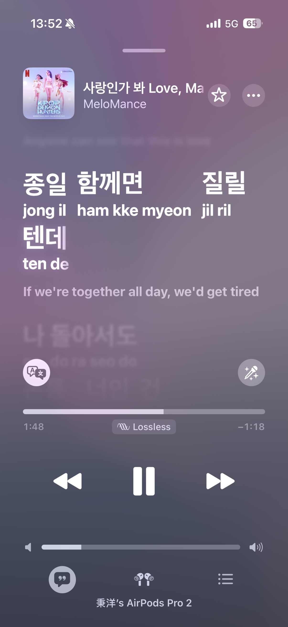 iOS 26 音樂歌詞有內建翻譯跟空耳發音(? 好讚...