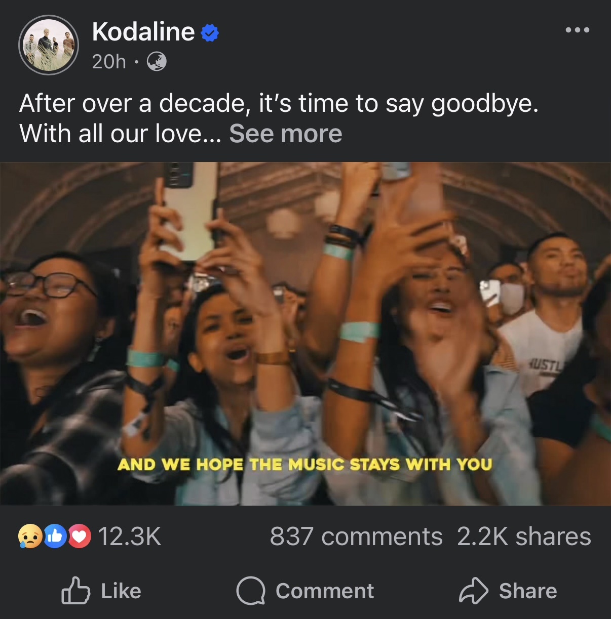 但是看到 Kodaline 要解散了還是有點難過
