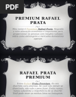 Meu nome é Rafael Prata. Minha paixão é viajar os diferentes lugares . Eu acho que o momento mais alegre na vida humana é uma partida em terras desconhecidas .Rafael Prata - Rafael Prata Presidente da Premium