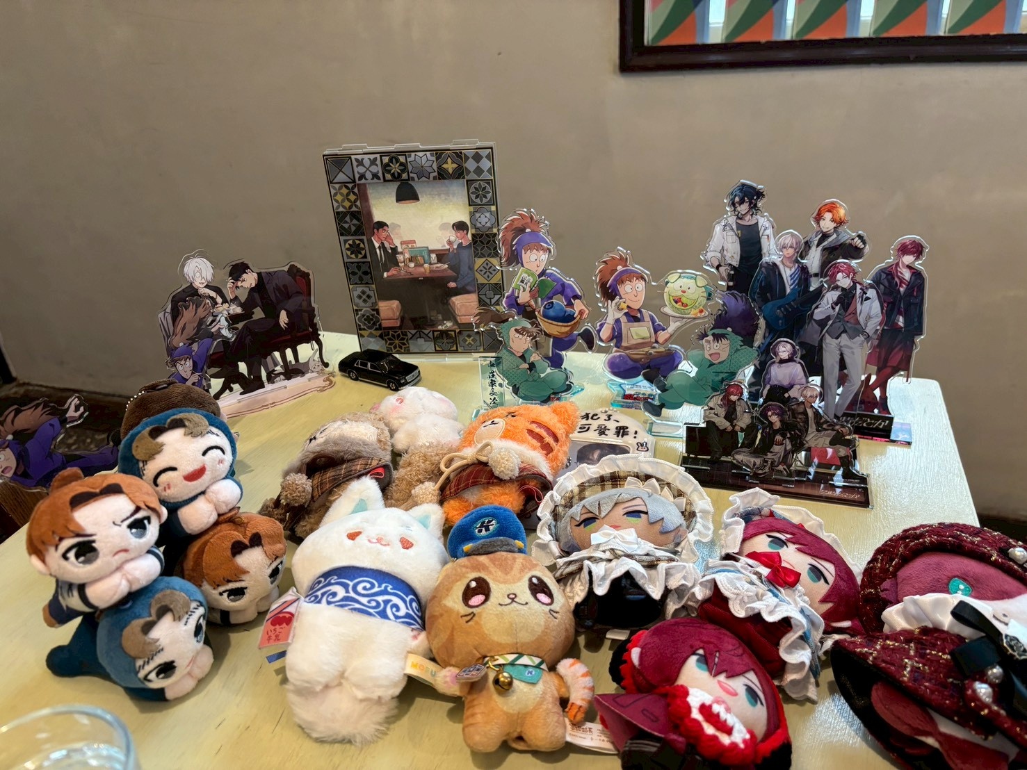 跟同好聚餐,元素非常雜XDD有狂聰、彩虹社、電競隊伍、忍亂、鬼太郎、蜜柑、PLAVE,還有我的貝貝也有出席,超有趣