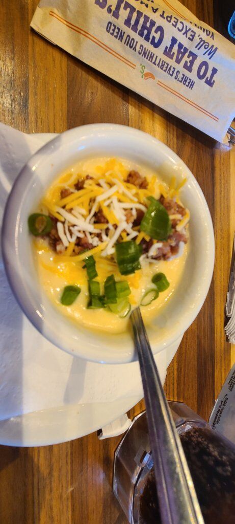 Went to Chili's for an early birthday lunch, and I forgot to take a photo of my entree (I had a deluxe grilled chicken sandwich!) But this soup was SO GOOD.