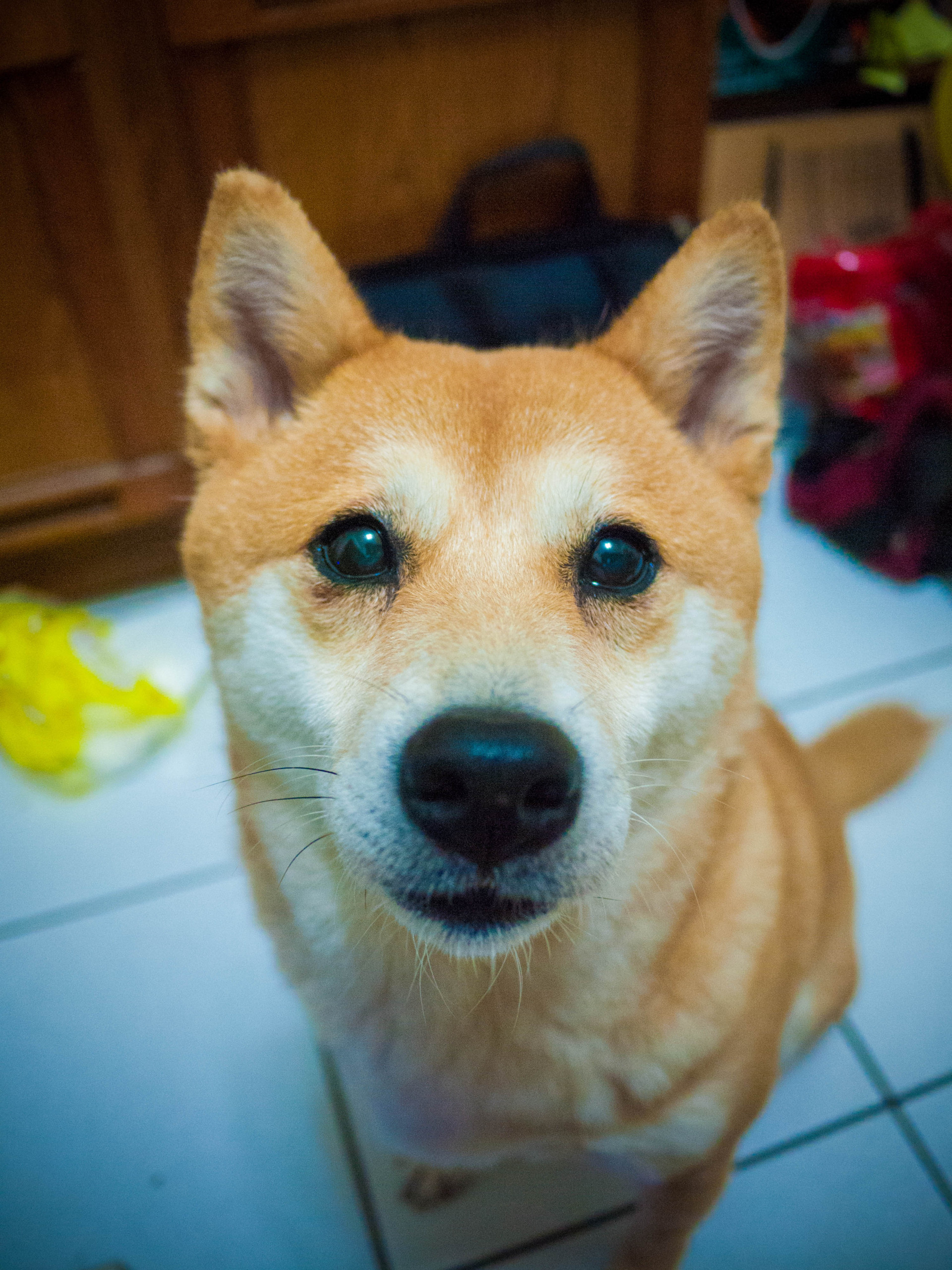 這是用食物誘惑他乖乖坐下之後拍的大頭照