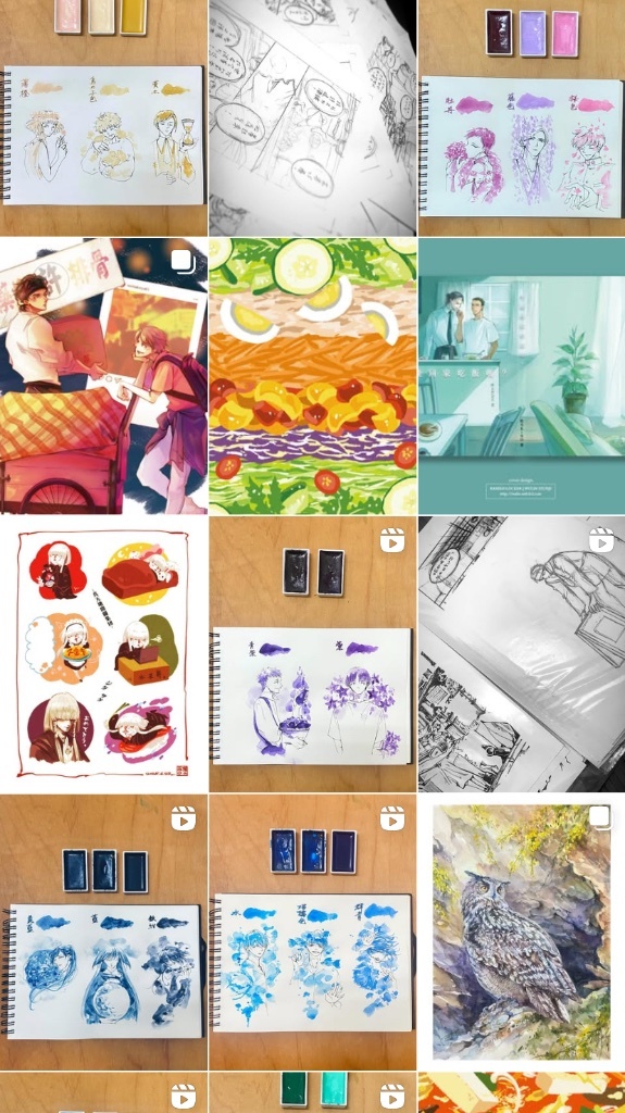 從今年5月起開始在IG更新使用吳竹顏彩耽美48色組畫單色小圖的試色影片