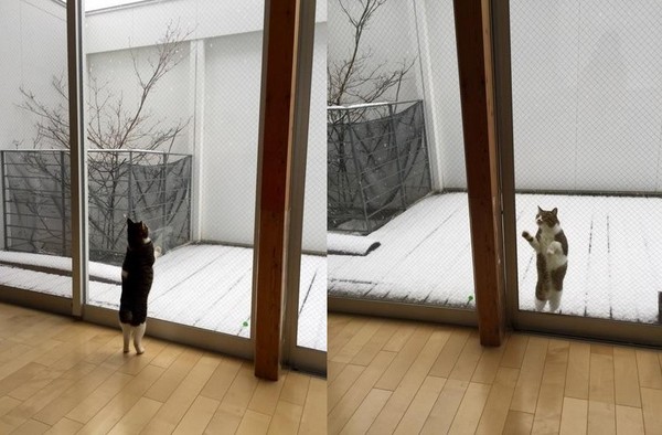 貼窗看雪「好想玩哦」 貓出門5秒就後悔:放我進去啊