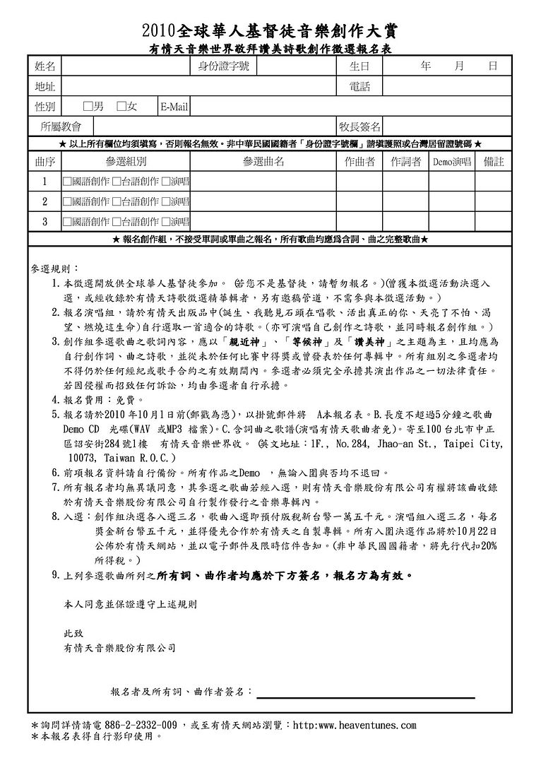2010有情天創作詩歌徵選正式起跑啦~!請大家告訴大家踴躍參與喔!