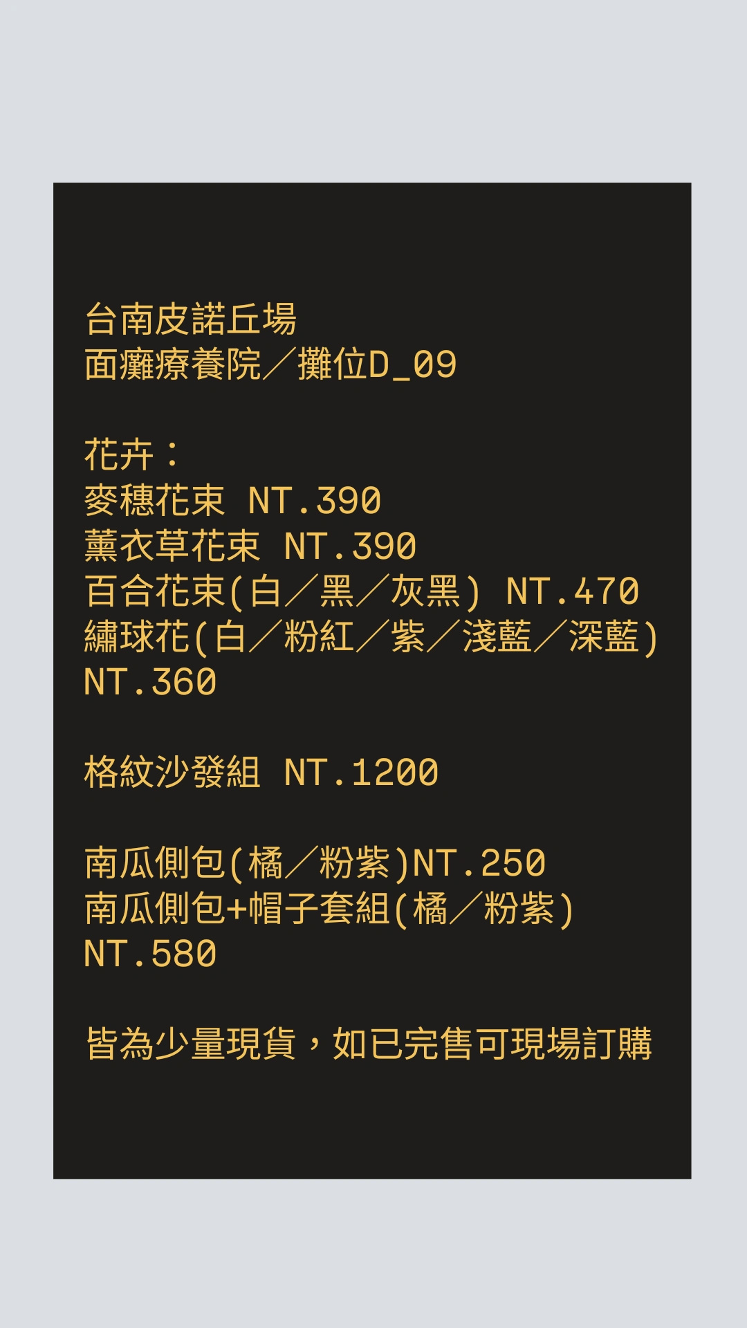 如有剩餘現貨,可在11/2台南皮諾丘攤位上購買!