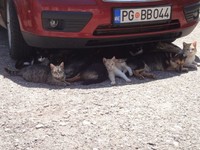 太熱了!逾6隻貓、4隻狗全擠到車底乘涼