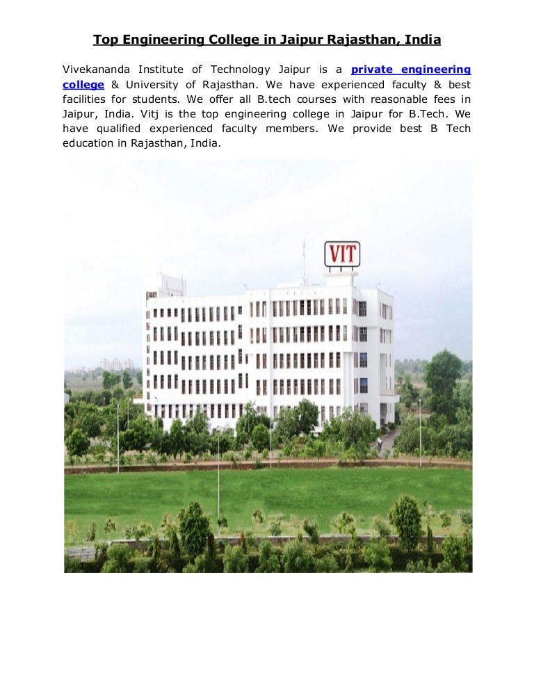 Private engineering college Vivekananda Institute of Technology is private engineering college & University of Rajasthan. We offer all B.tech courses @ reasonable fees in India.