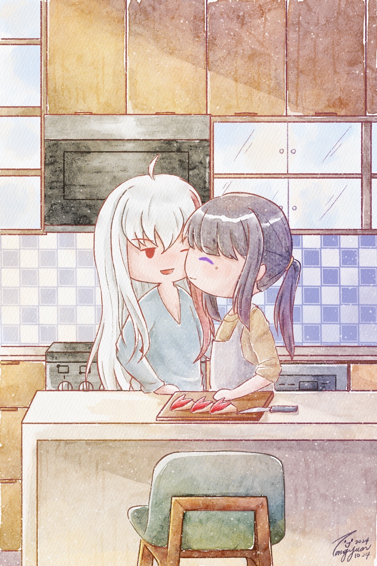最後一張冰夏委託釋出啦!當初是自己私心請湯圓搭配我的舊文畫的,再次祝冰夏親吻日快樂