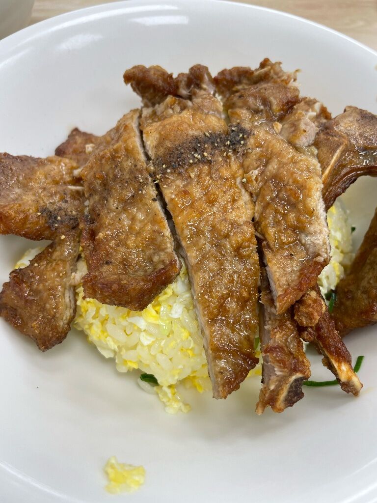 看別人推薦所以來吃看看,他有一個稱號是平價版鼎泰豐—是指排骨炒飯的部分吧,確實滿好吃的!滑嫩的蛋粒跟簡單的調味,而且店面很乾淨。餛飩湯也不錯,如果餡料再飽滿一點會更好。然後我桌號寫9老闆默默改成6,看來是已經看多了。